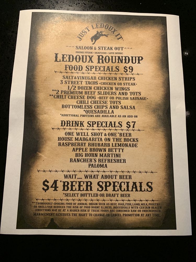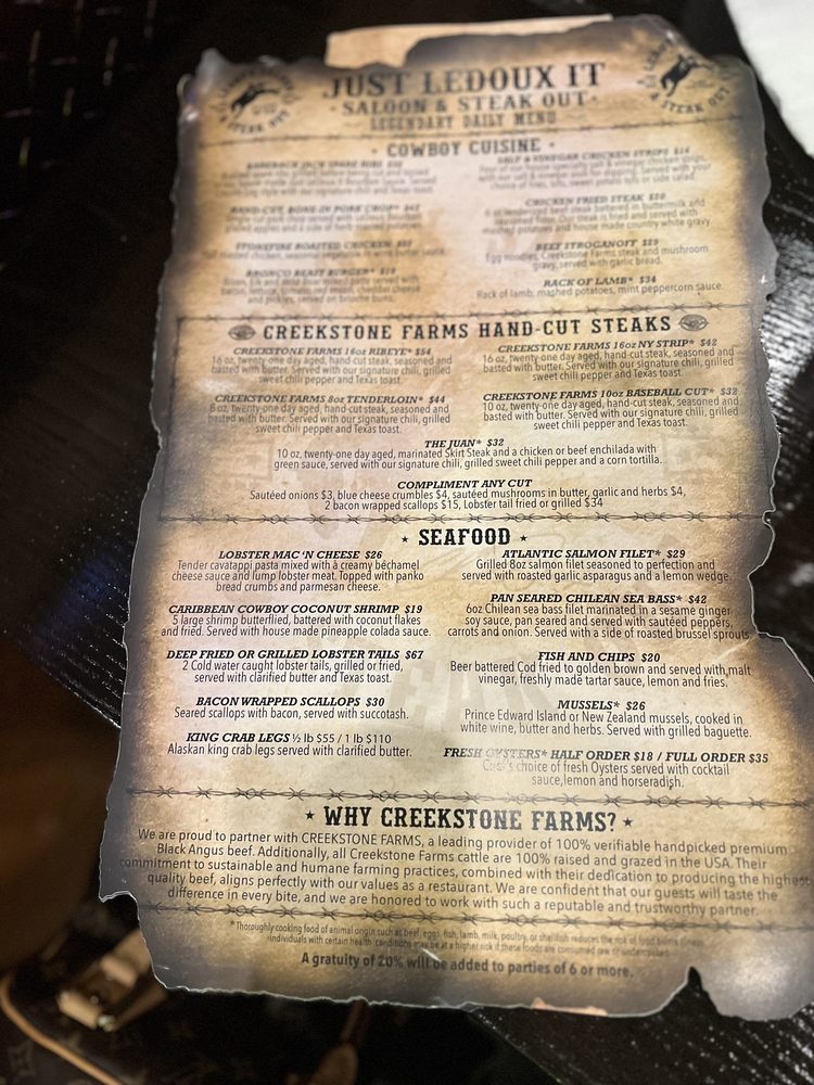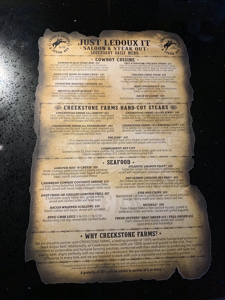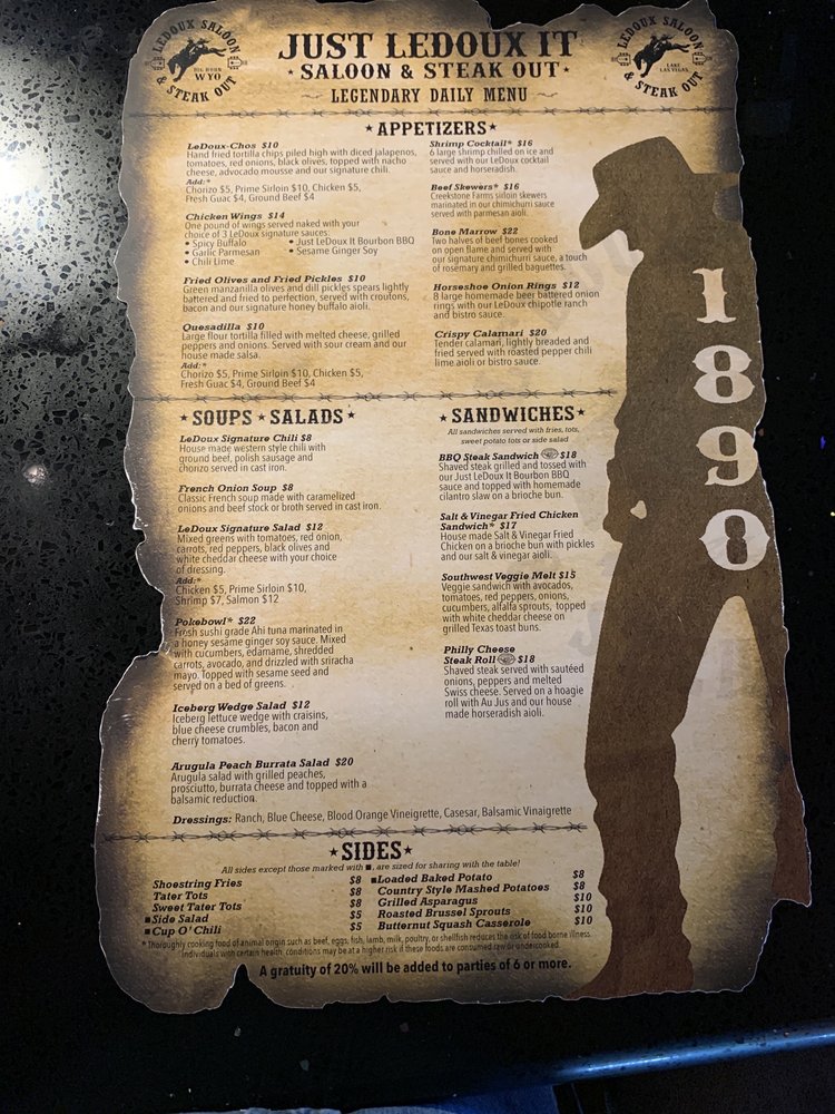 Introducing the Menu at LeDoux It Saloon & Steak Out Las Vegas